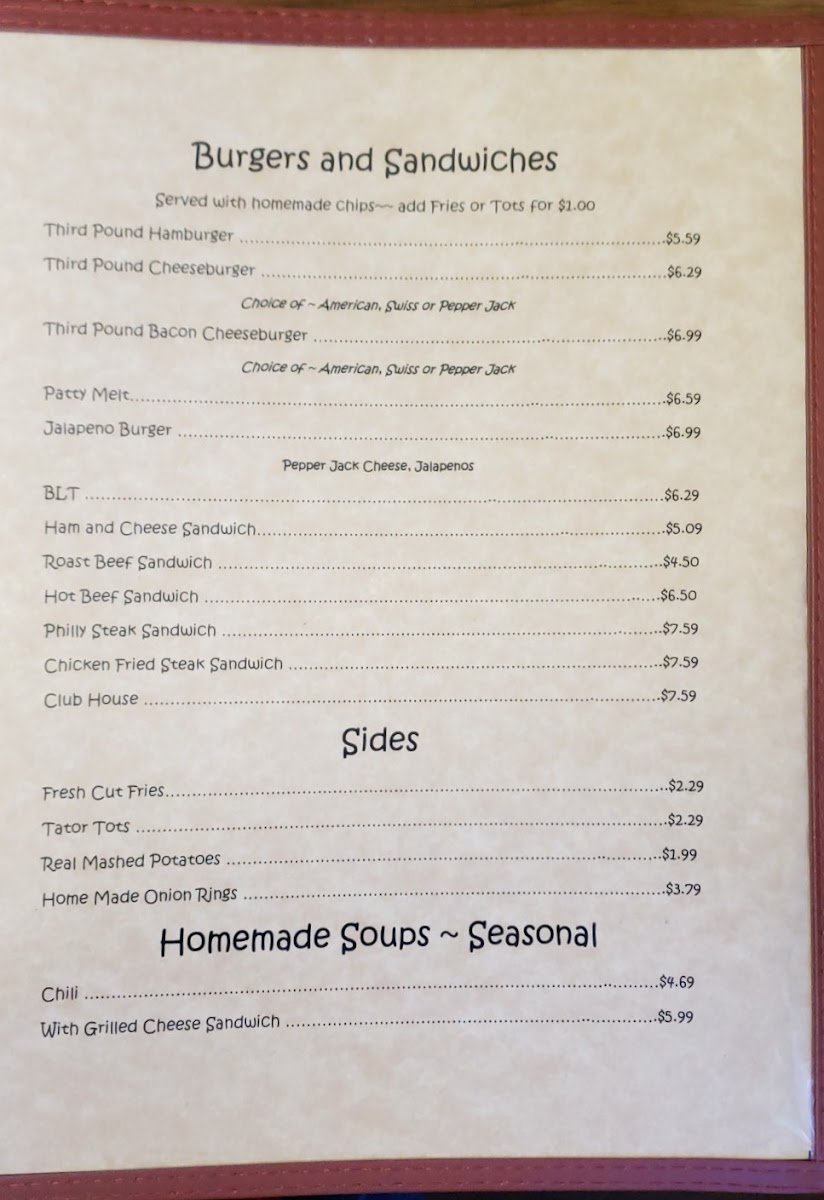For the burger aficionados, the offerings include a satisfying Third Pound Hamburger, a flavorful Jalapeno Burger, and the classic Patty Melt. Each bite radiates authenticity, showcasing the cafe's commitment to quality ingredients. Don't overlook the side dishes; their Fresh Cut Fries and Home Made Onion Rings are the perfect complements to any meal.